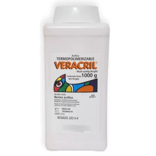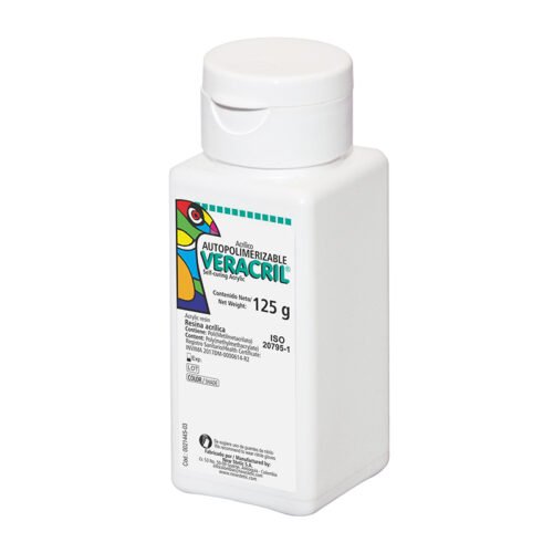 El acrílico Veracril® es una resina acrílica autopolimerizable (polímero) en colores vita, indicada para reparar y elaborar piezas dentales provisionales, coronas y puentes.