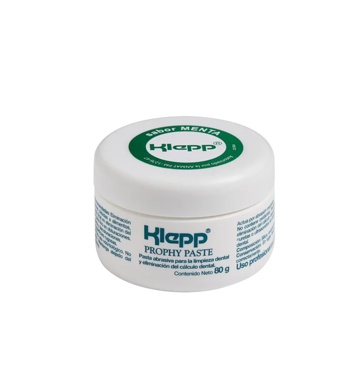 La Pasta Profiláctica Klepp limpia eficazmente la superficie dentaria sin dañar el esmalte, dentina o cemento. Proporciona un acabado pulido y estético, sin aceite y con textura adecuada. Su envase práctico evita el resecado.